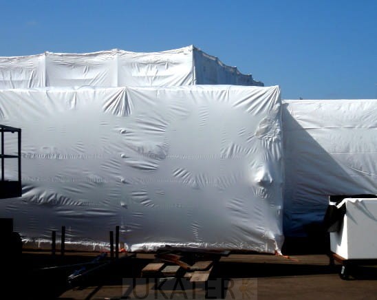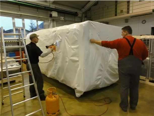Folia termokurczliwa APP jest jedną z najgrubszych folii termokurczliwych dostępnych w naszej ofercie. Jest to folia wysokiej jakości, najczęściej stosowana jako osłona rusztowań podczas prac budowlanych oraz  w transporcie do zabezpieczania ładunków w trudnych warunkach. Folia wulkanizuje się ze sobą, co pozwala łączyć bryty w dowolnej konfiguracji i zabezpieczać bardzo niejednolite kształty.