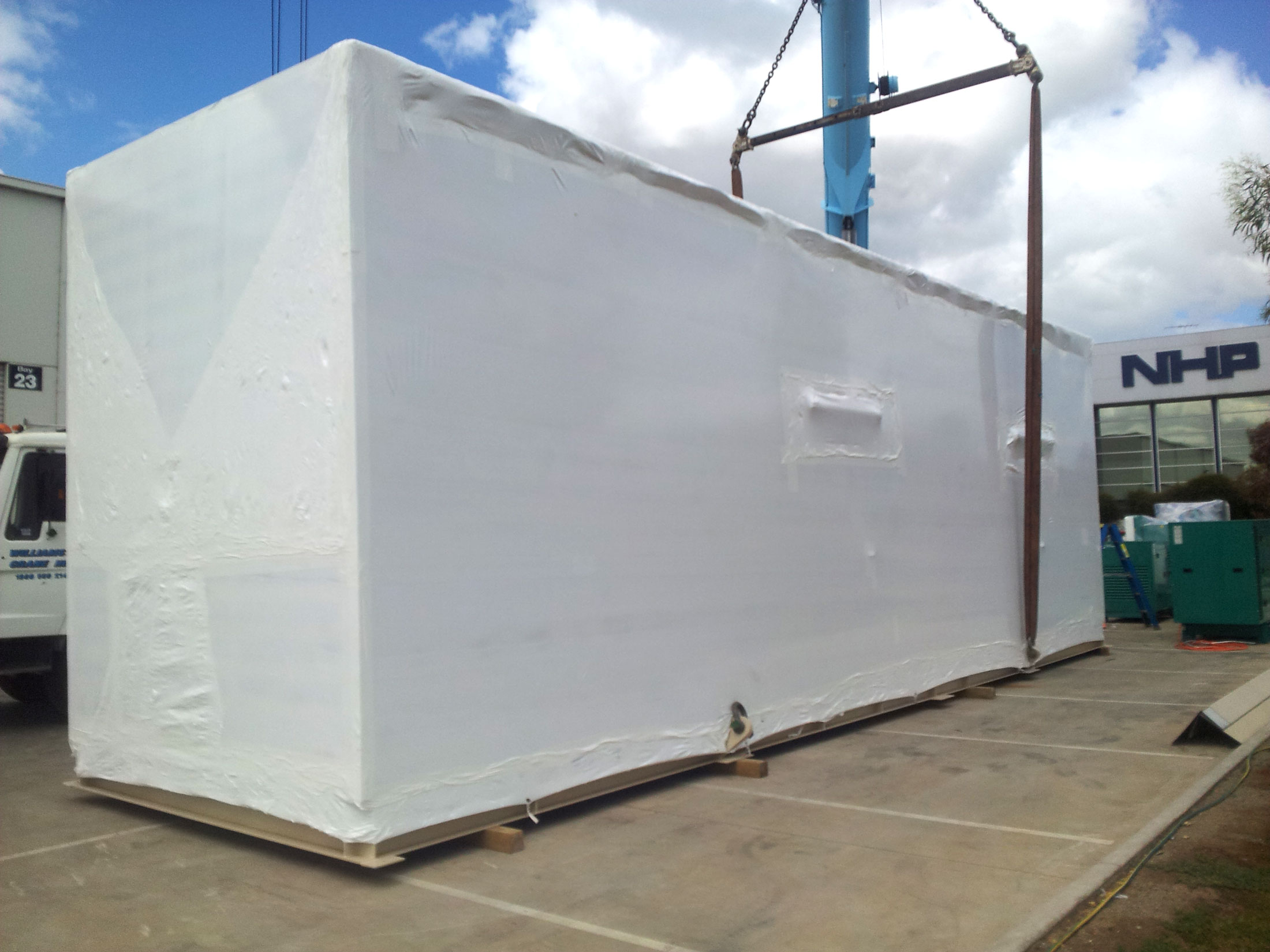 Folia termokurczliwa trudnopalna z certyfikatem DIN4102 B1 nadaje się do okrywania rusztowań – pod folią tworzy się szczelne środowisko izolujące pracowników od warunków zewnętrznych. Produkt daje możliwość wytworzenia odpowiedniego klimatu wewnątrz konstrukcji.